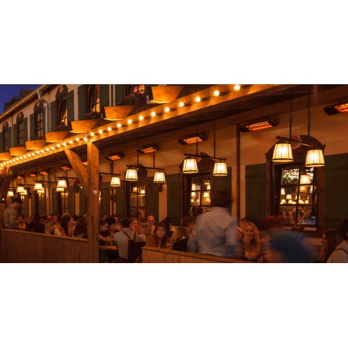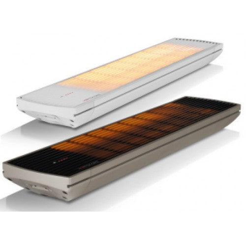 Deze hoogwaardige terras-, veranda- en badkamerverwarming heeft een aluminium behuizing met een designrooster vóór de lamp.