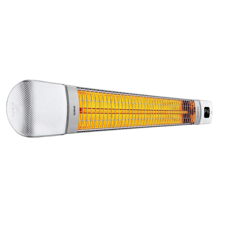 De 2500W carbonlamp is voelbaar tot 5–6 meter in de maximale stand.