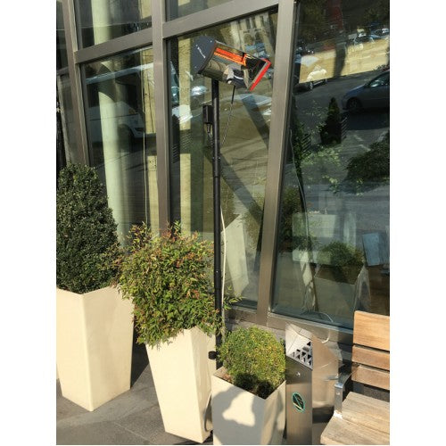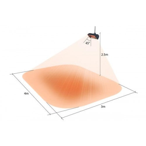 Made of powder-coated stainless steel, it's fully weatherproof thanks to its IP66 waterproof rating, and equipped with a powerful 2000W low-glare lamp . This allows you to feel intense heat up to 4 meters away in seconds, while the red glow almost completely disappears.