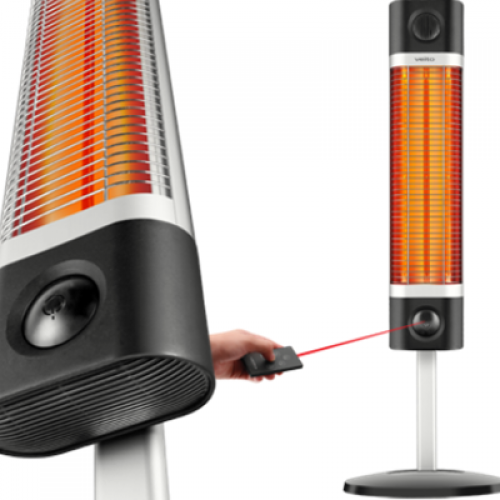 The 1700W carbon lamp can be felt up to 3–4 meters in the maximum position.